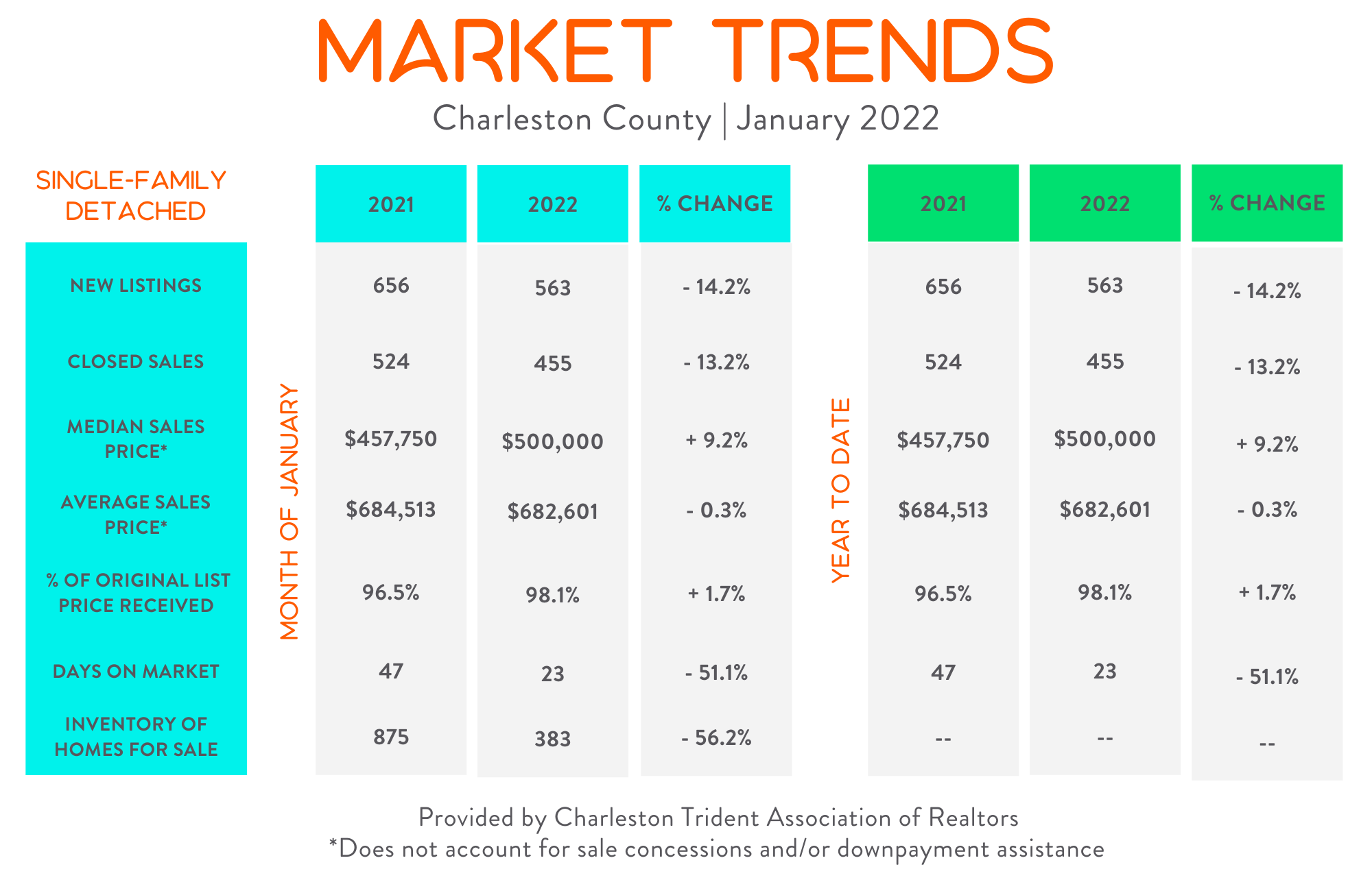- Days on market for January were at 23 days, up from 21 in December but well below the 47 days from Jan. 2021. Well priced and in good condition, homes are still selling within hours, not days